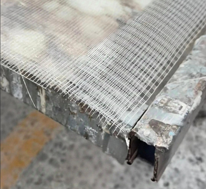Verwenden Epoxidharzkleber Zum Aufkleben eines hochfesten Faserschutznetzes (Maschenweite 5×5 mm, Gewicht ca. 900 g/m², Breite 1,2–1,8 m) auf die Steinrückseite. Nach dem Aushärten erhöht sich die Festigkeit der Platte. Geeignet zur Verstärkung großformatiger oder dünner Platten aus Marmor, Granit, Travertin und Onyx.