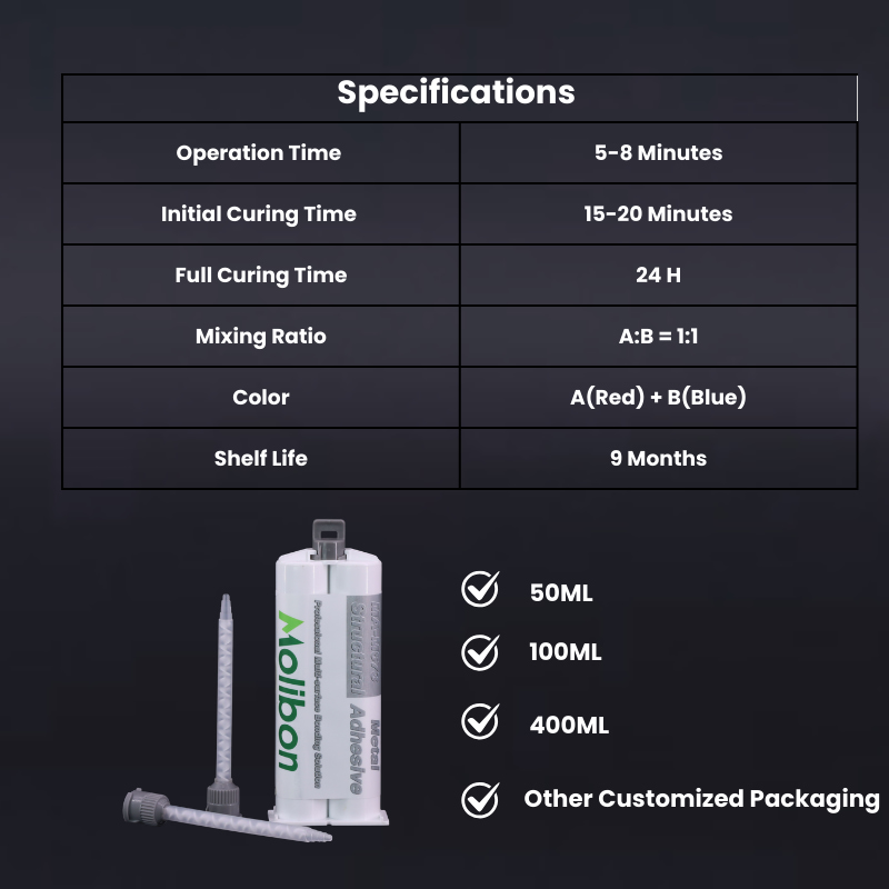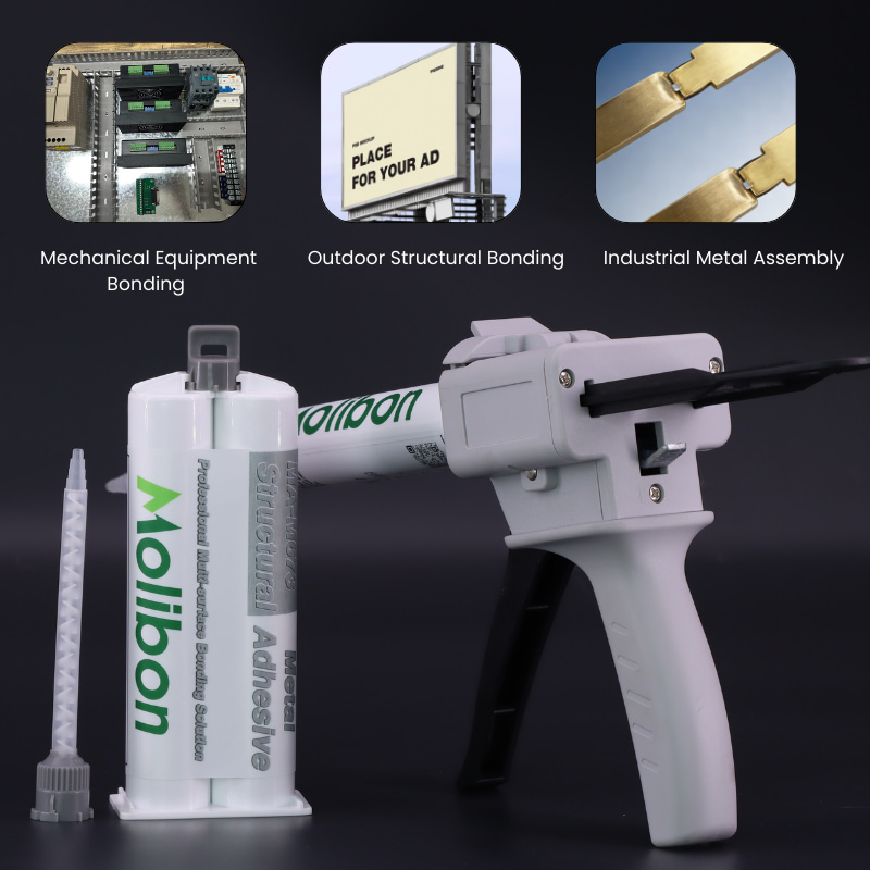 Ideal zum Verbinden von Metall- und technischen Kunststoffkomponenten in mechanischen Anlagen, Industrieller Metallklebstoffbietet eine hohe strukturelle Festigkeit und zuverlässige Langzeitleistung unter Stoß- und thermischer Belastung.