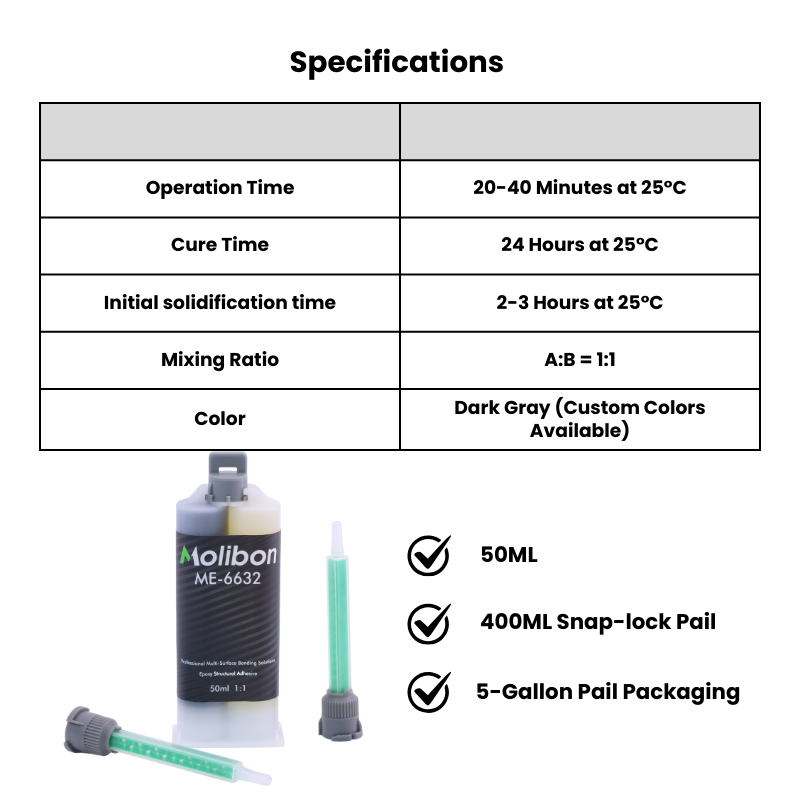 Der Zweikomponenten-Epoxidkleberist ein vielseitiger Epoxidkleber mittlerer Dicke. Mit einem einfachen Mischverhältnis von 1:1, lösungsmittelfreier Strukturklebstoffbietet eine ausgezeichnete Haftfestigkeit für vielseitige Transportanwendungen. 50 ml Klebstoff Die Aushärtung erfolgt bei Raumtemperatur oder kann durch Wärmebehandlung beschleunigt werden.